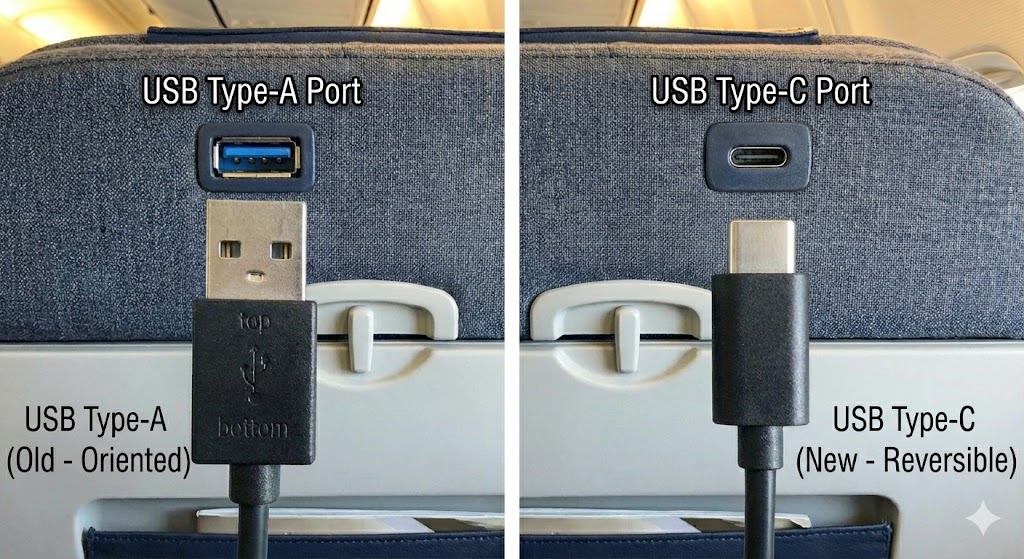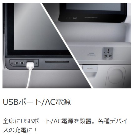 ですが、座席のUSBポートは、機材によって USB-A の場合があります。