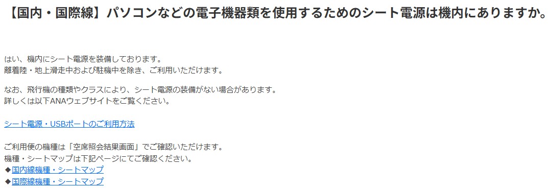 ANA側も、機内にシート電源を装備している旨を公式に案内しています。