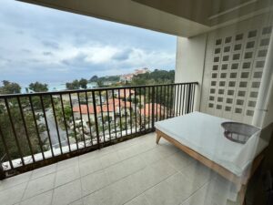 サンセット側のバルコニーからは、ブセナ岬の穏やかな景色が広がります。